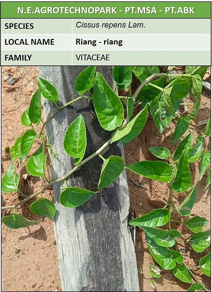 Cissus repens Lam. adalah tanaman merambat yang termasuk dalam keluarga Vitaceae, yang juga dikenal sebagai anggur-angguran. Tanaman ini asli dari daerah tropis Asia, termasuk Indonesia. Berikut adalah beberapa informasi penting tentang Cissus repens: