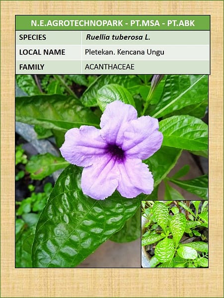 - Tanaman Hias: Karena bunganya yang indah, Ruellia tuberosa juga sering ditanam sebagai tanaman hias di taman dan pekarangan.