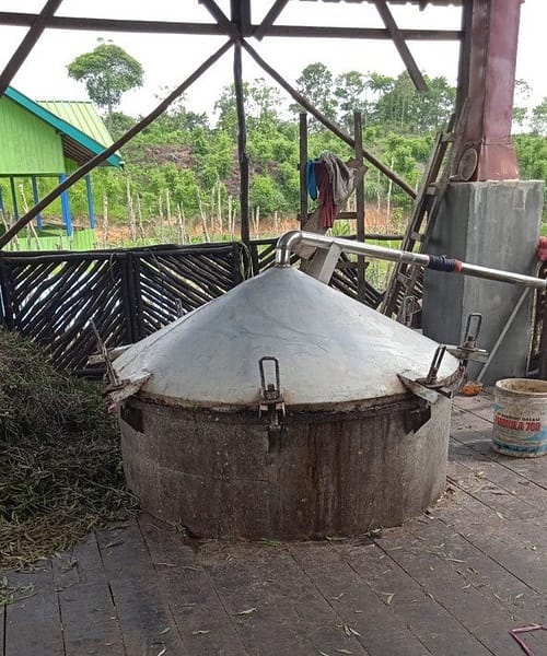 Penyulingan Minyak Atsiri berupa Minyak Kayu Putih, hasil panen dari areal revegetasi.